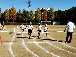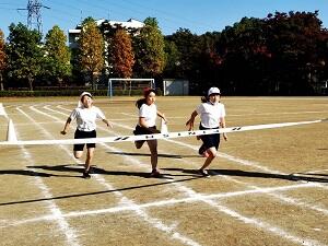 次に種目の一番、100m短距離走です。ゴールに向かって走る姿は、さすがに6年生。