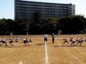 次の種目は、運動会の定番、綱引きです。1組女子対2組女子、1組男子対2組男子、そして、1組担任