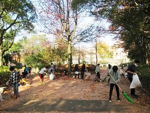 1~4年生は校庭で、5・6年生は学校の外に出て、大量の落ち葉を拾いました。