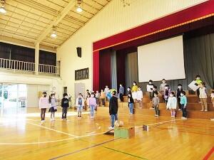 リコーダーと「リズムなわとび」を、ソーシャルディスタンスに気を付けながら、取り組んでいます。