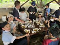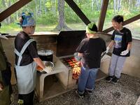 夕食カレー作りをしました。みんな協力して、美味しいカレーをたっぷりいただきました。「やさいがかためだぁ」と話してるグループも、和気あいあい、笑顔で食べました。とってもいい思い出ができました。これから、ナイトハイクです。