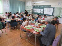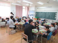 多摩市教育委員会の方々が学校に来られました。子供たちや先生たちの様子を見学されました。各学級に教育委員会の方1~2人入って、懇談給食も行いました。「好きな食べ物は?」「運動会に来ますか?」とたくさんのお話をする子供たちに、教育委員会の方々も歓迎を受けて、楽しく過ごされた聞きました。また、勉強のことや環境のことなどのお話を聞くこともできました。1年生では、子供たちが教育委員さんとの話の中で、授業で「かみしばい」をしてくださる話題となり、後日実現しそうです。写真は、懇談給食の様子です。