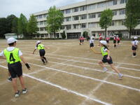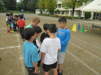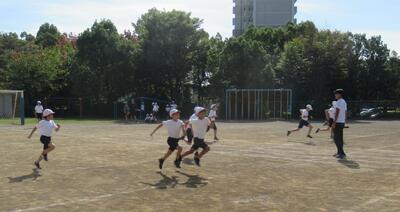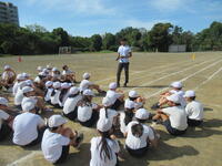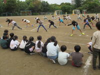 10月25日(土)の運動会を前に、「陸上教室」を開催しました。全学年児童が、現在、日本で活躍しているアスリートから走り方を学んでいます。特別授業をしてくれたのは、国士舘大学の「橋本 秀汰朗(はしもと しゅうたろう)」さんです。橋本さんは、男子十種競技の選手で、2024年日本選手権混成優勝で「キング・オブ・アスリート」の称号を受け、2025年学生個人選手権で優勝するなど、日本の学生ナンバーワンの選手です。本校では、ピアティーチャーとして勤務しており、子供たちと普段から関わってくれています。今日は、膝の使い方やステップの仕方など、どのように上手く走れるか話してくれました。子供たちも軽快な走りを楽しんでいました。