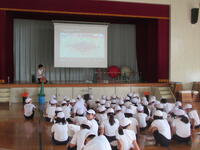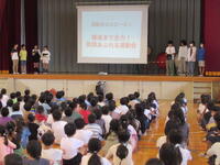 10月9日(木)に運動会スローガン発表集会がありました。代表の児童から、運動会のスローガンが発表され、みんなで復唱し、運動会に向けて、気持ちを高めていました。スローガンは、「最後まで全力!笑顔あふれる運動会」です。