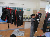 10月10日(金)どの学年も運動会の準備を進めています。3年生は、図工の時間に、はっぴに文字を入れていました。一人一人思いを込めた字に力強さを感じます。5・6年生は、大画面を見ながら、隊形移動の位置を確認していました。自分の演技場所はどこか、どのような演技をするのかイメージを膨らませていました。