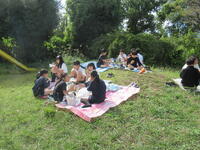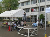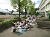 お昼は、野外給食をしました。秋晴れの下で、鳥の竜田揚げを挟んだバーガーを、みんなで食べながら、運動会前のひとときを過ごしました。力をつけて、いざ、運動会です。