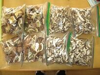 6年生のシイタケグループは16日に収穫したシイタケを1週間干して干しシイタケを作っていました。