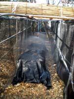 前夜からの大雪で雪の重みに耐えられず、しいたけ小屋がつぶれてしまいました…。