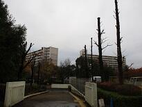 12月2日、校庭周りの剪定に続き、北門駐車場脇のケヤキも