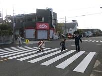 今月は3日間実施します。11月10日は、貝取北センター交差点と学校正門前に