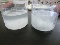 体験その2 トイレットペーパーとティッシュペーパーを水に濡らして混ぜてみると、