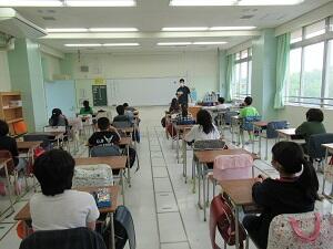 広い教室を使用し、「3密」を避けて学習しています。