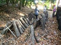 シイタケのほだ木を並べたり、階段の補修、下草刈りをしたりしました。