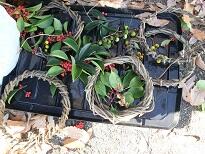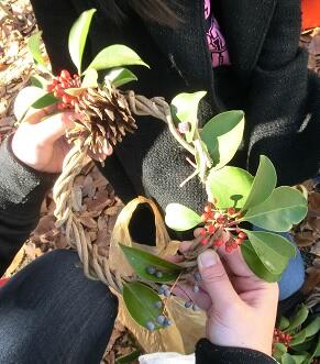 子どもたちは学校林のクズと木の実を使ってリースをつくりました