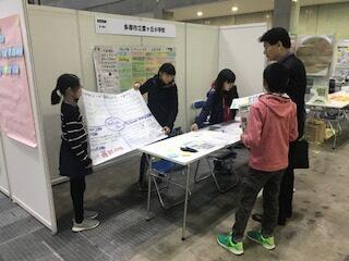 ブースの前で6年生が発表します