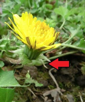 花の基部(総苞)がくっついているのが日本タンポポ。反りかえっているのがセイヨウウタンポポです。