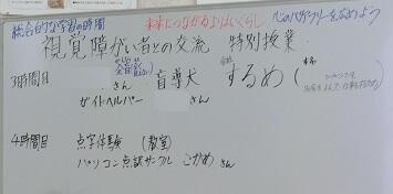 4年生は、昨日の視覚障がい者の方との交流に続き