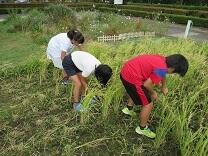 10月12日、5年生が6月12日に植えて育ててきたもち米の稲刈りをしました。