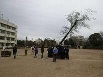 地域のお店からいただいた門松や剪定枝、学校の剪定枝を入れていきます。