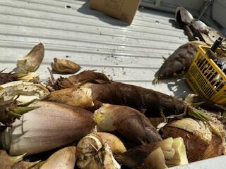今日は、1,2年生が楽しみにしていた「筍掘り」に出掛けました。自然に親しみ、春の訪れを感じ、1,2年生で協力して筍を掘ることを目当てとして行いました。結果は、目当てを達成し、さらに筍も大収穫でした。子供たちも協力して、おいしそうな筍をゲットすることができました。明日の給食時に、収穫した筍を食べてみます。自分たちで収穫した旬の筍のおいしさを感じることができますでしょうか。1,2年生の皆さんの素晴らしい集団行動にも大きな拍手を送ります。ご協力いただきました地域の皆様にも、深く感謝申し上げます。ありがとうございました。