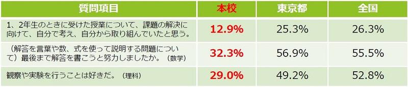 ▶学習への意欲が高い生徒が相対的に少なかった。