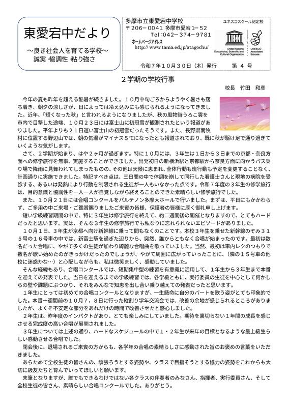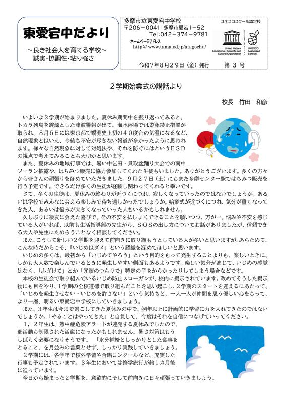 R7愛中だより 最新の投稿順 最新の投稿順 古い投稿順 コメントの多い順 10件 1件 5件 10件 20件 50件 100件 愛中だより 第4号 R7学校便り第4号 .pdf 愛中だより 第3号 R7学校便り第3号 .pdf 愛中だより 第2号 R7学校便り第2号 .pdf 愛中だより 第1号 R7学校便り第1号.pdf