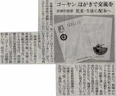 多摩市のグリーンカーテンプロジェクトのイメージキャラクターに美術部のアル・サンくんがデザインした「ゴーヤン」が採用されました。