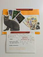 昨年度まで聖中の副校長先生で、今も毎週ピアティーチャーの先生として毎週来られている金田先生にたくさんの猫のポストカードやシールをいただきました。