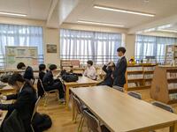 順番に校長先生や副校長先生に練習していただくまで、図書館が待機場所になりました。
