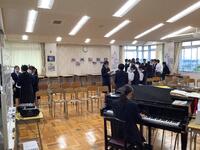 合唱祭の前日、学校での最後の練習時間。最後の最後まで、自分たちの歌をもっとよくするにはどうしたらいいか、真剣に、笑顔で話し合う3年生の姿が見られました。1、2年生の各練習場所では、今までで一番の歌声が響きわたっていました。この歌声が、明日で一旦聞けなくなることがとても残念です。