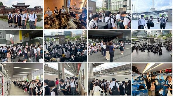 3日目の班行動を終え、3年生たちは京都駅に集合し、京都駅前の広場で閉校式を行いました。その後ホームに移動し、新幹線に乗り京都駅を出発しました。