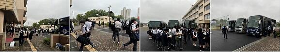 本日より3日間、落合中学校の3年生は修学旅行に行きます。朝、落合中学校に集合した3年生の生徒たちは、バスに乗り込み元気に出発しました。このあと、新横浜駅より新幹線に乗り京都・奈良方面へ向かいます。