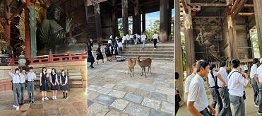 奈良の最初の目的地、法隆寺に行きました。クラスごとに集合写真を撮ったり、金堂、五重塔などを見学しました。青空も見られ天候にも恵まれた中、見学できているようです。