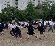 7月9日(火)昼休みに生徒会主催の外遊びキャンペーンで「手つなぎ鬼」を行いました。校庭で生徒たちは元気に走り回っていました。