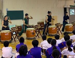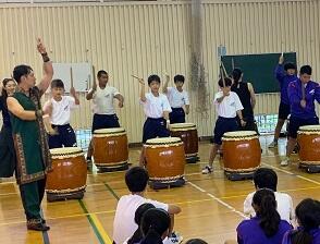 12日(金)1年生と5組が、文化芸術による文化育成事業の一環として和太鼓の体験を行いました。2時間の体験の中で生徒たちは和太鼓をたたいて楽しんでいました。