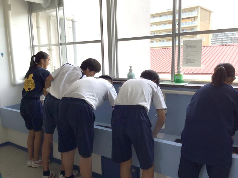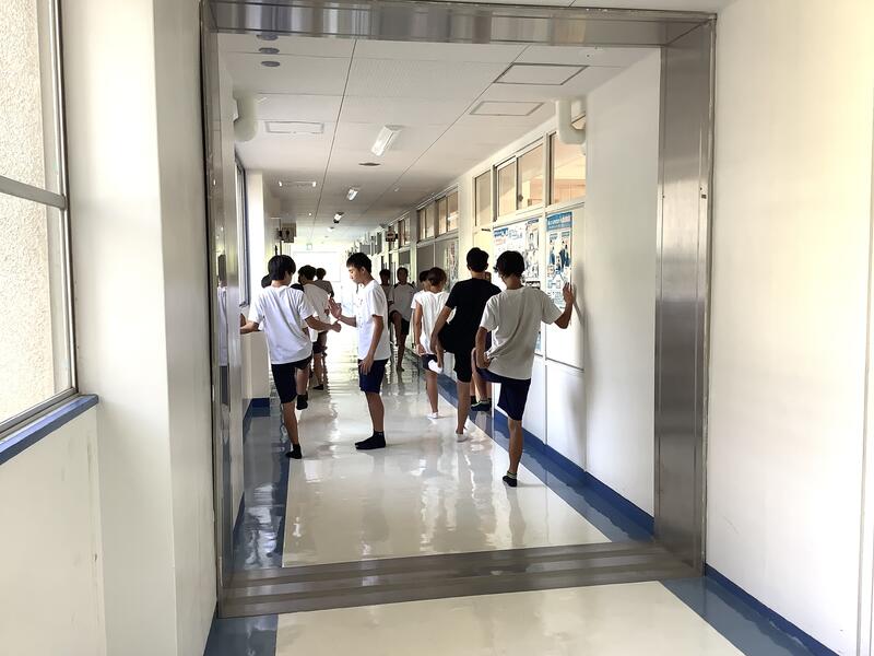 閉庁日が終わり、今日から部活動が再開しました。久しぶりの部活動でしたので、運動強度の低い活動から、徐々に体を慣らしていました。外の部活動は、定期的に冷房の効いた部屋で休憩をとりながら行っていました。