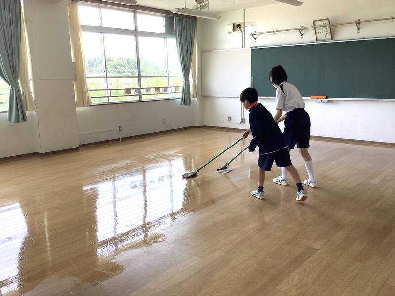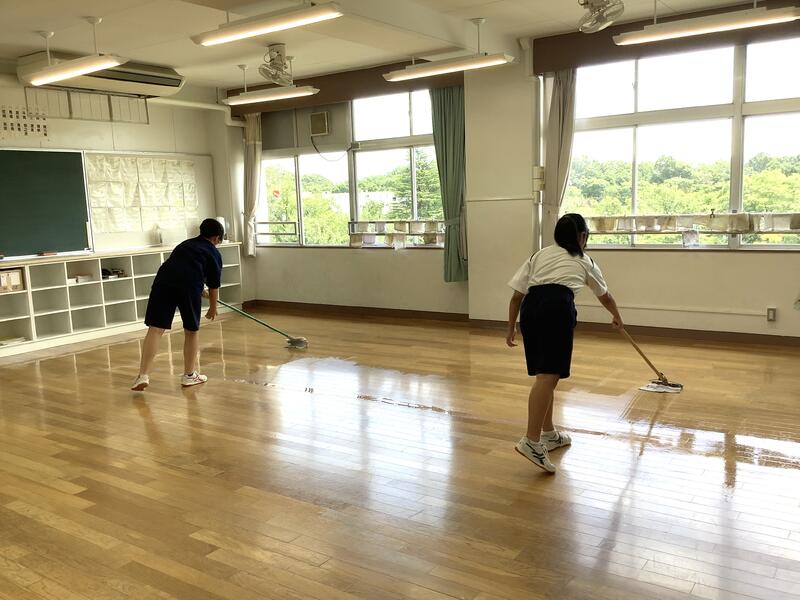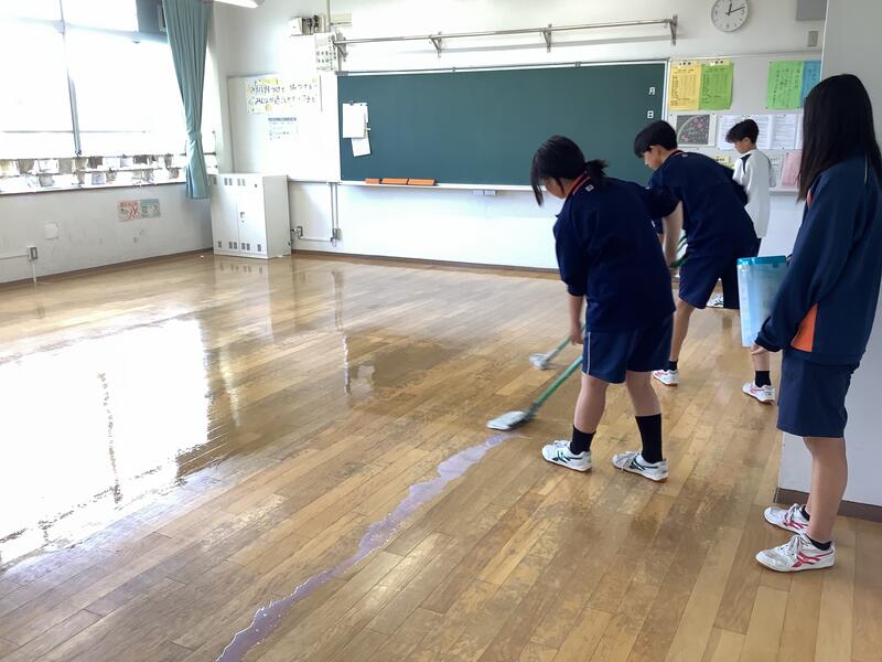 放課後には、美化委員と学級委員が残って仕上げのワックス塗りをしてくれました。おかげでピカピカになりました!