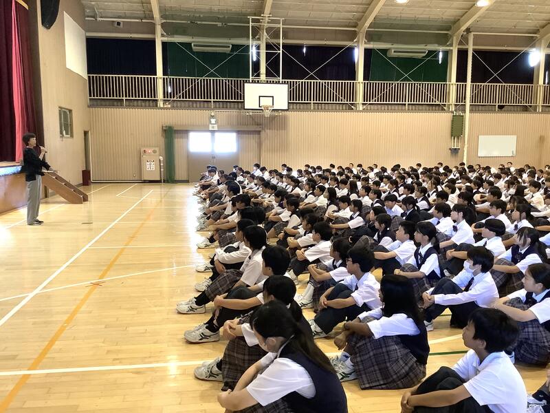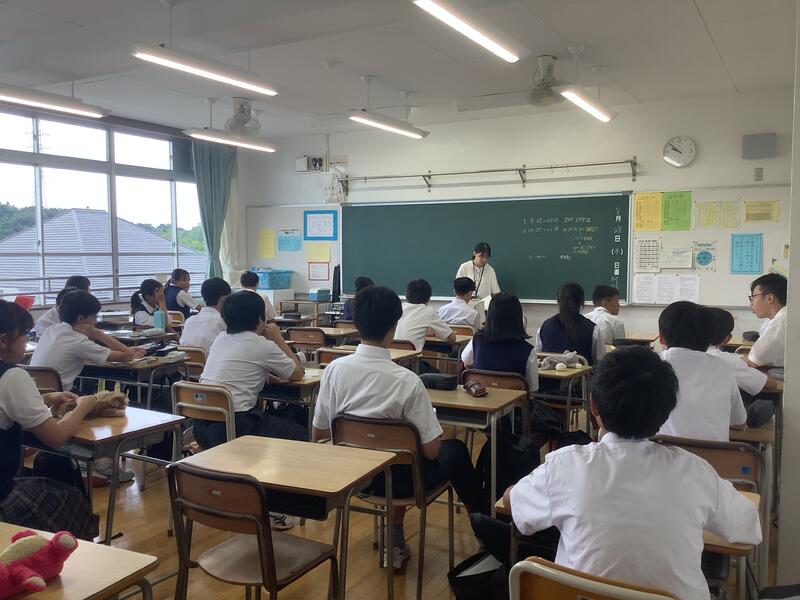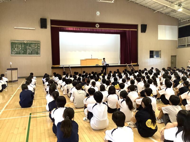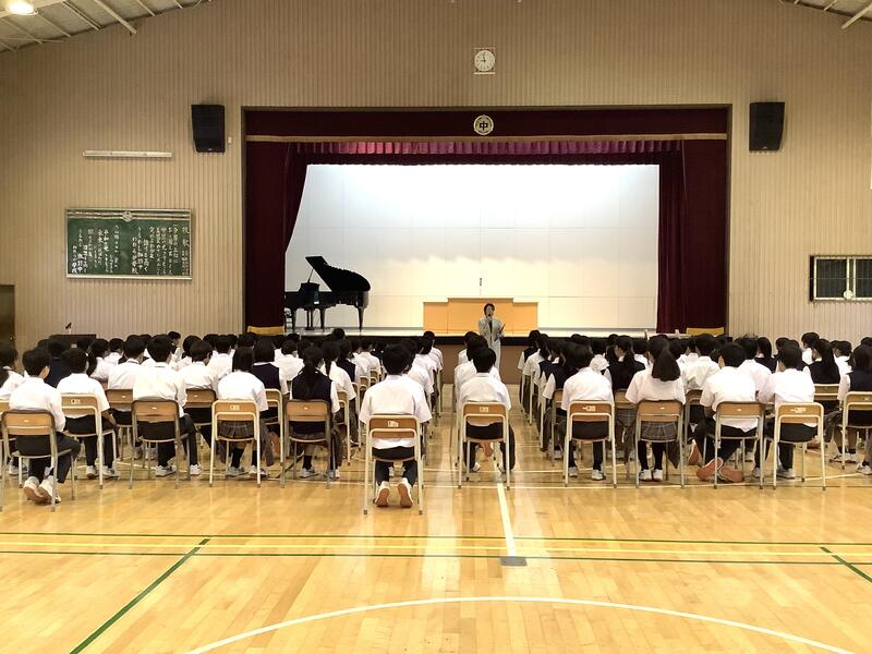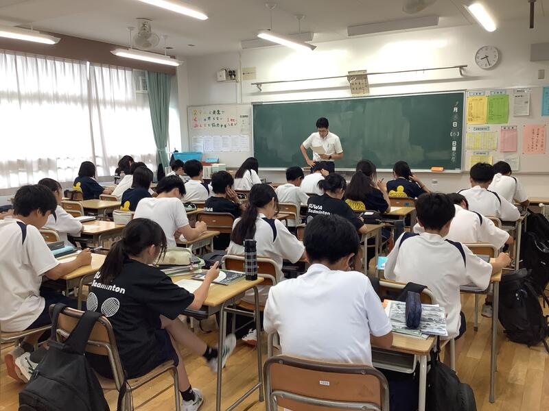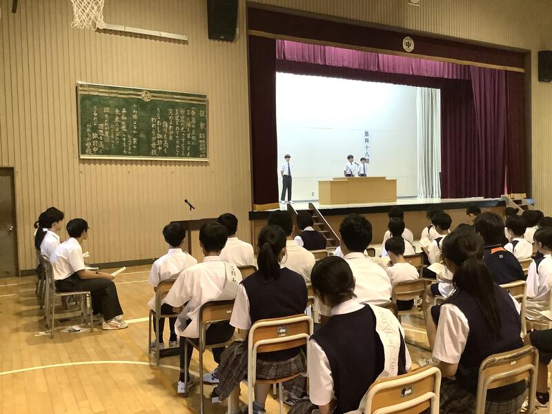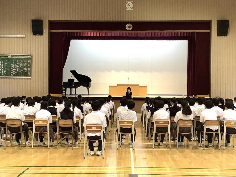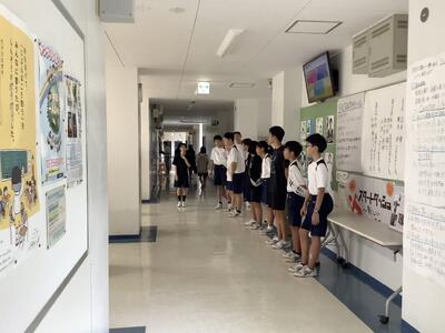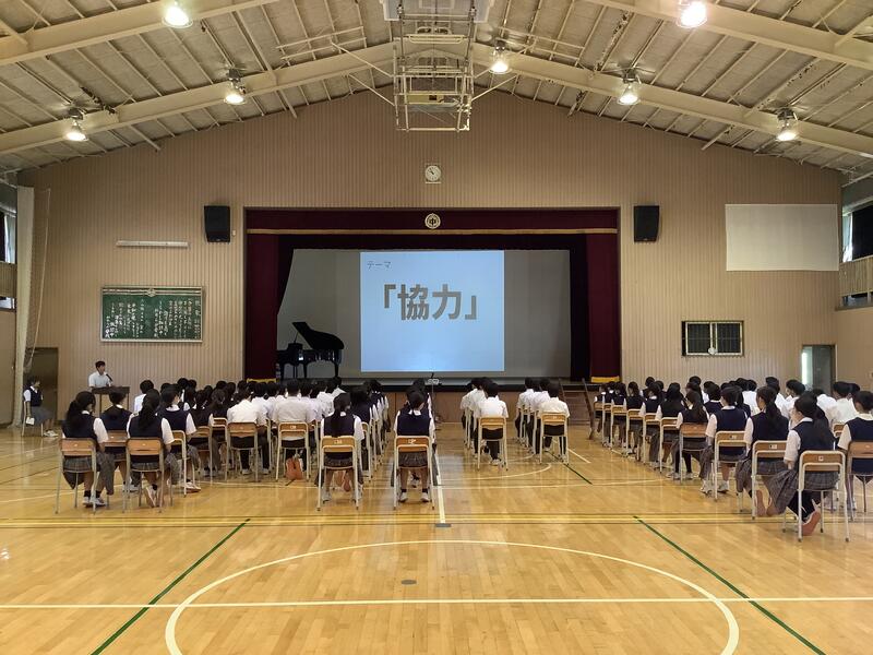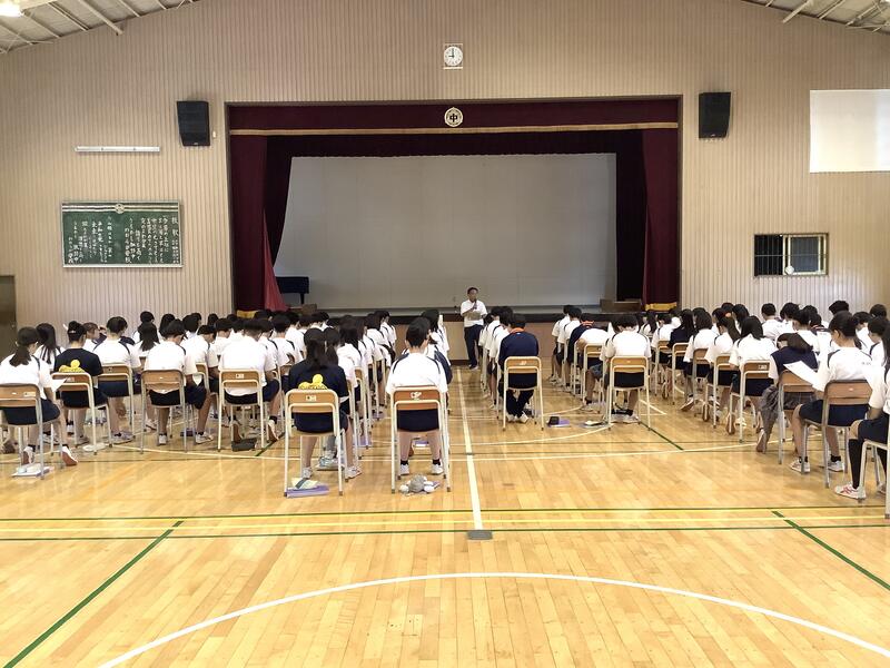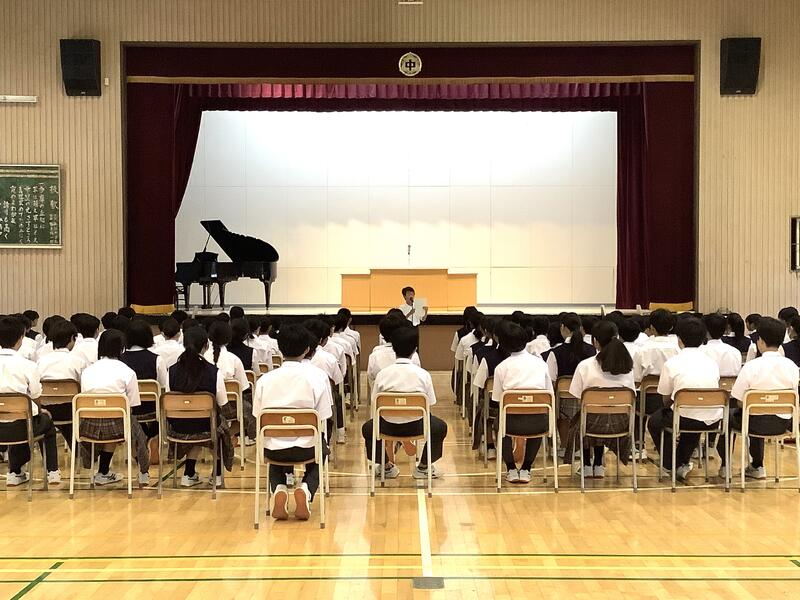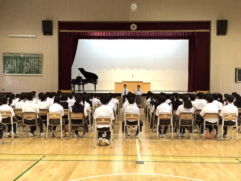 1時間目は1年生の学年集会でした。各クラスの学級委員と学級委員長から1学期の課題や成果の報告、また、それをもとにしたクラスへの呼びかけもありました。先生方からの話も含め、生徒は真剣な様子で聞いていました。