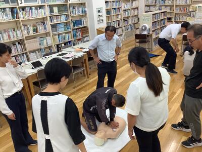 事故発生時に備えて心肺蘇生法の研修会を行いました。
