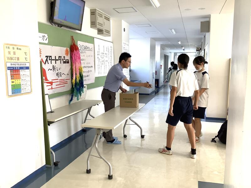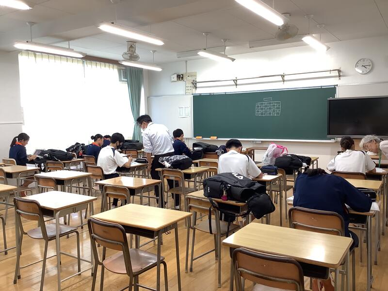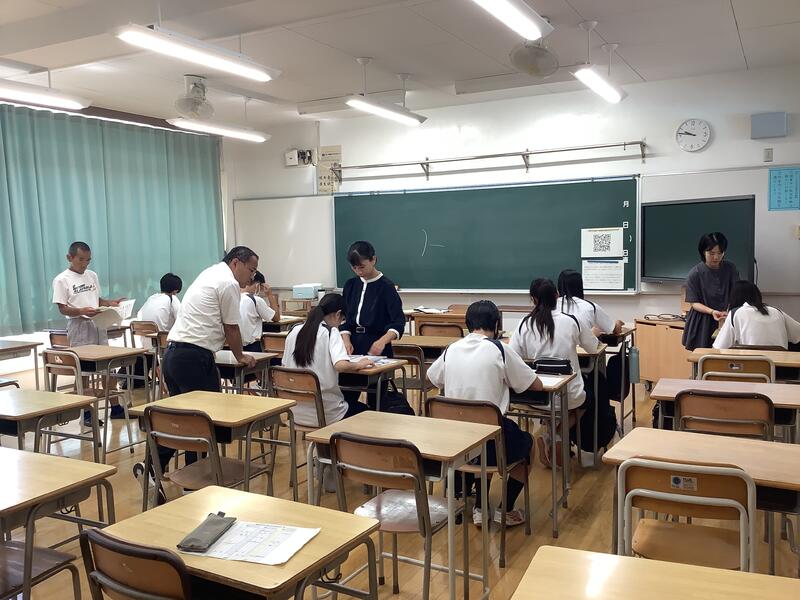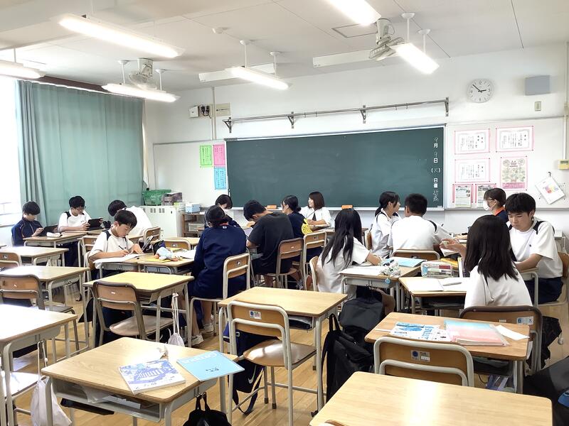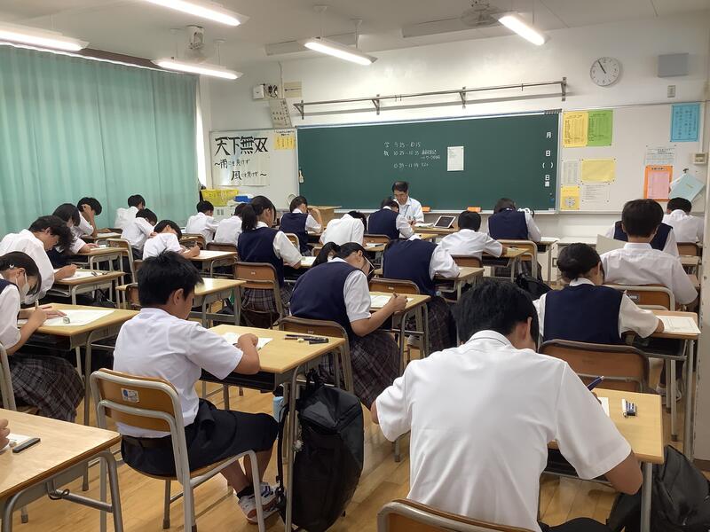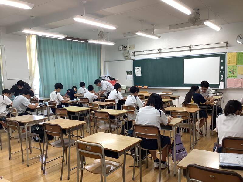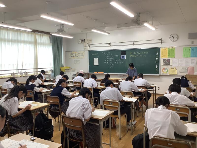 2時間目は、各学年とも夏休みの学習の確認テストがありました。定期考査の時と同様に真剣に取り組んでいました。