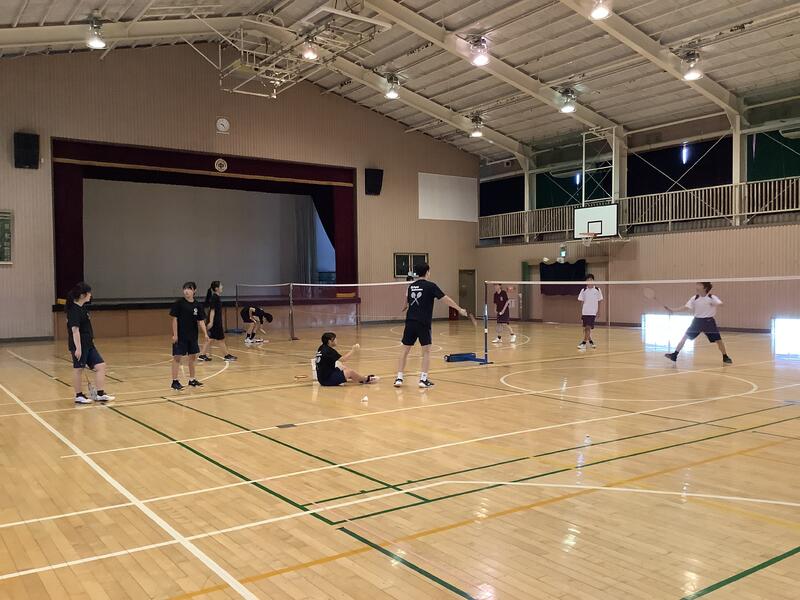 今日は日差しもなく、いい風が吹いてる中での活動となりました。テニス部とバドミントン部ともに、3年生が引退し1•2年生による活動となっています。バドミントン部には、コーチが指導に来てくださっていました。