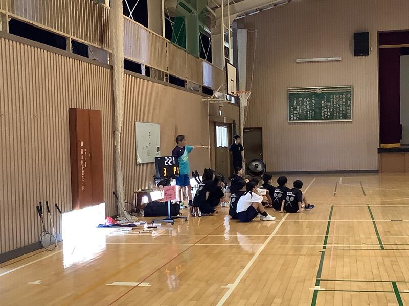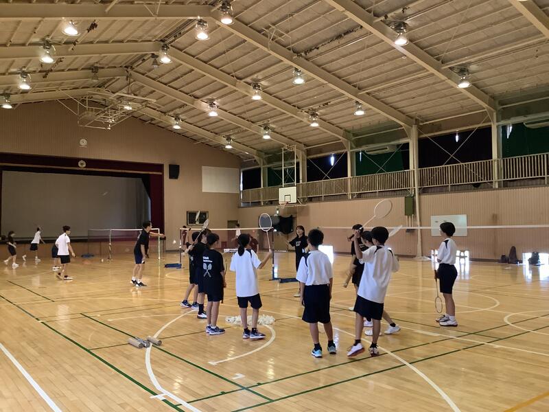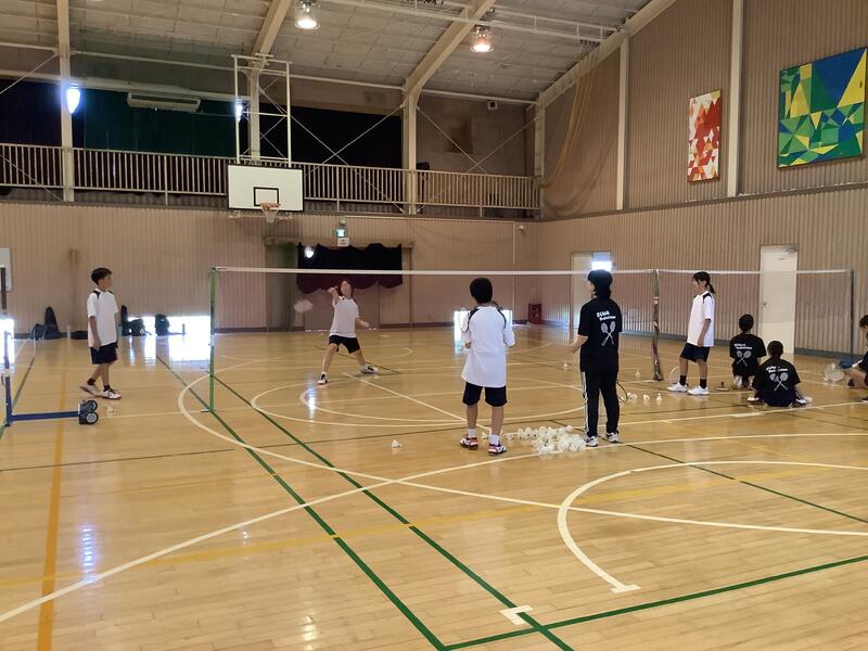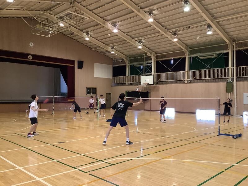 体育館は、冷房とファンを稼働させた中での活動なので、午前中だけでなく、一日を3つの時間帯に分けて行っています。今日は一番はじめの時間帯は、バドミントン部でした。