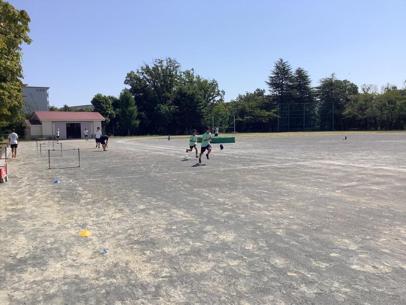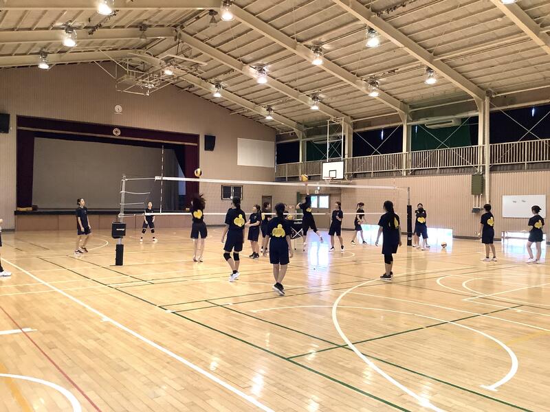 今日も午前中から暑くなっていますが、校庭では陸上部が、体育館ではバレーボール部が暑さ対策をしながら活動していました。