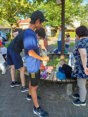 ラジオ体操は、3日間とも天候に恵まれました。今日も多くの人が集まりました。最終日だったので、お菓子と飲み物が配られました。