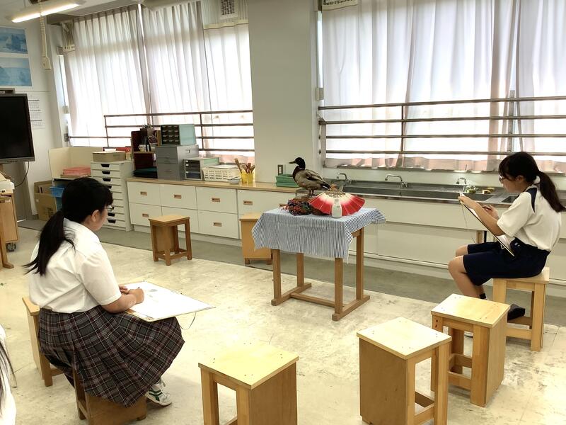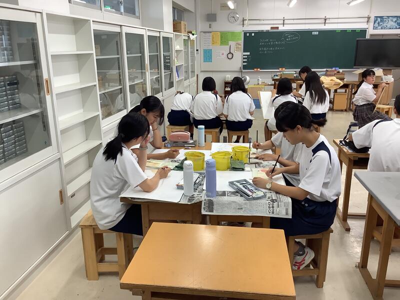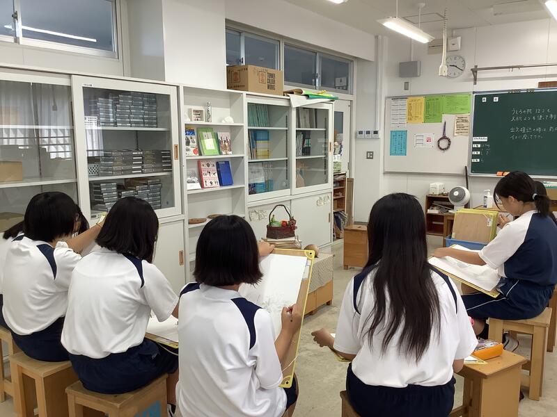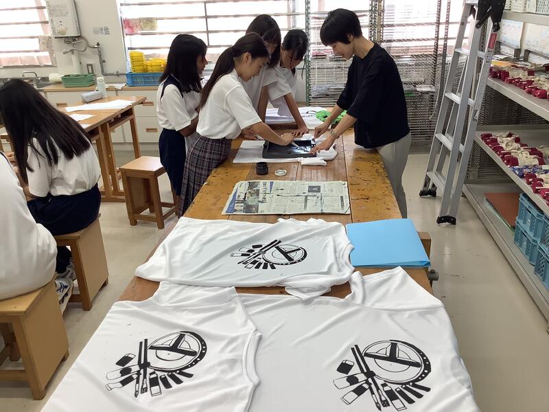 美術部では、デッサンをしたり、オリジナルTシャツの制作をしたり、コンクール用の作品を描いたりと、個人での活動を進めていました。オリジナルTシャツはとてもいいデザインですね。