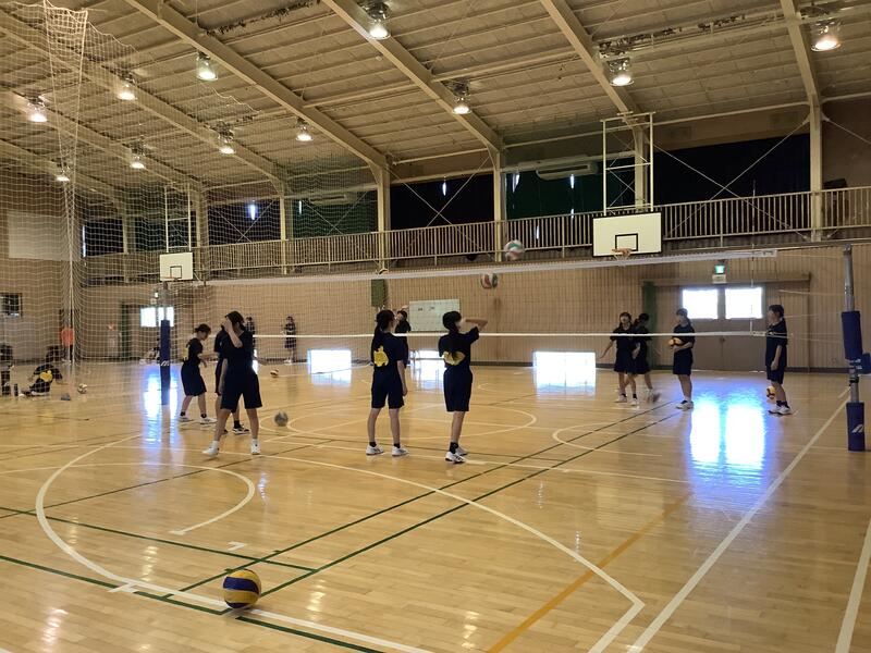 体育館では、明日からの武相大会を控えているバレーボール部が練習に励んでいました。練習の成果が十分に発揮した試合になることを願っています。写真は学年ごとに分かれた練習を行っているところです。