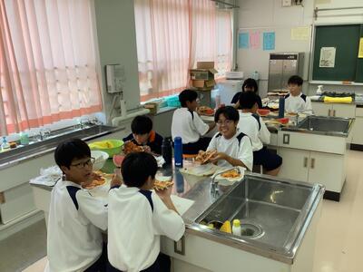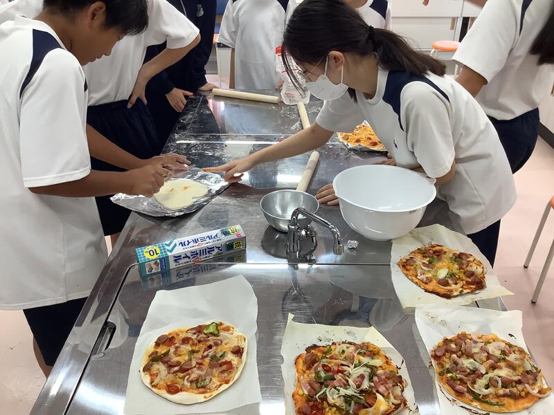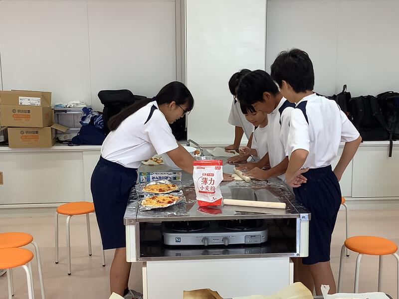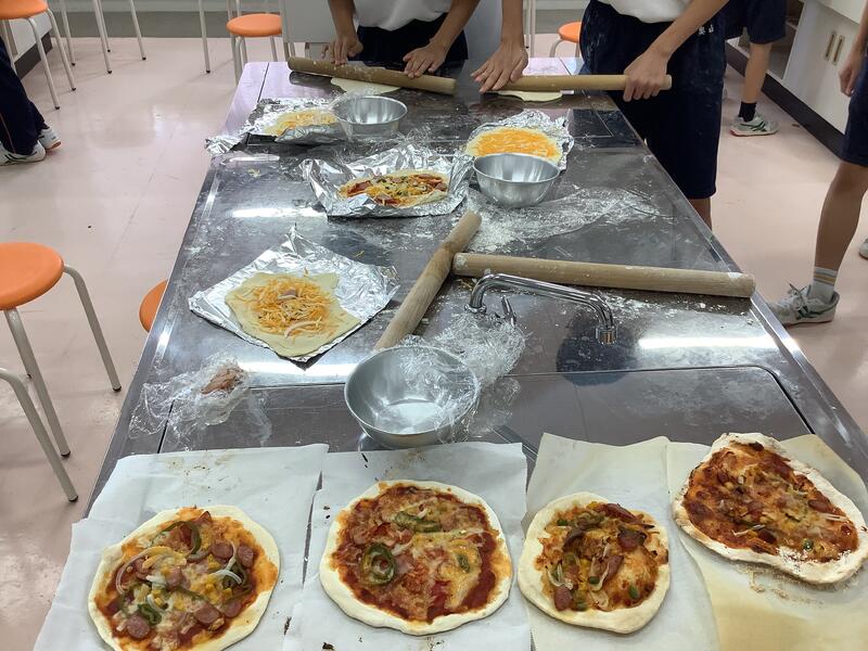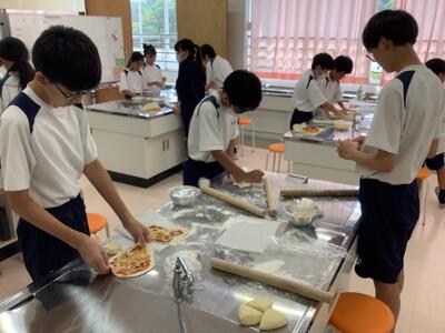 技術部の生徒たちがピザ作りをしています。トマトと枝豆は自分たちで育てて収穫したものだそうです。焼き上がりが楽しみですね!