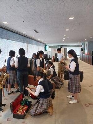 吹奏楽部が府中の森芸術劇場にて、吹奏楽コンクールに参加しました。規定で演奏中の写真はとれていませんが、緊張感の中、きれいな音色を響かせてくれました。