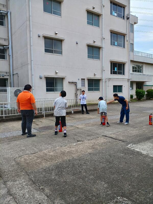 本校体育館にて小学生と中学生を対象に防災キャンプが開催されました。二日間にわたり、ダンポールハウスを作ったり、カレーを作ったり、消火器の使い方を学んだりしていました。