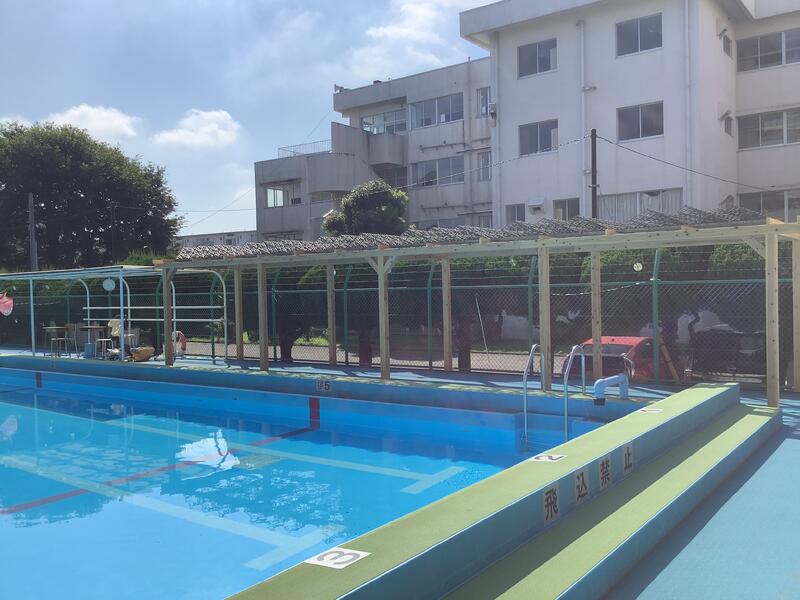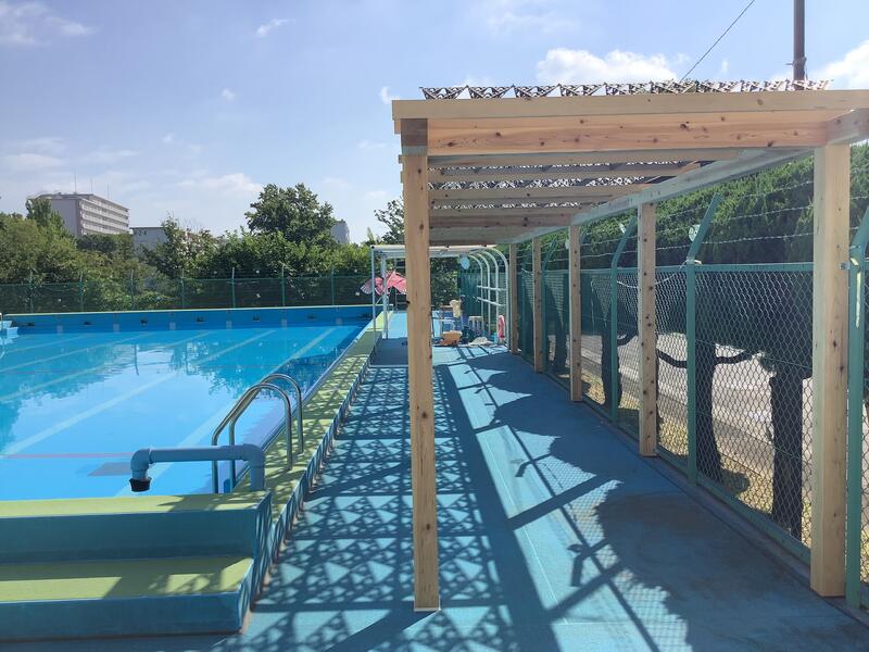 閉庁日期間を利用してプールサイドに、屋根を設置する工事が行われました。これにより、外部からの視線を避けたり、強い日差しから守ることに高い効果が期待されます。
